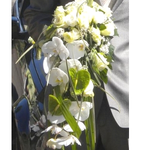 Bouquet de la mariée composé d’orchidées, anthuriums et roses (couleur selon le mariage)
